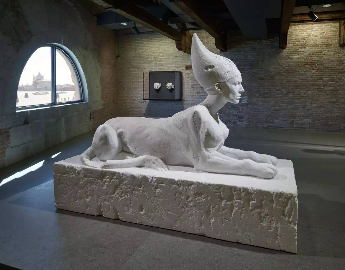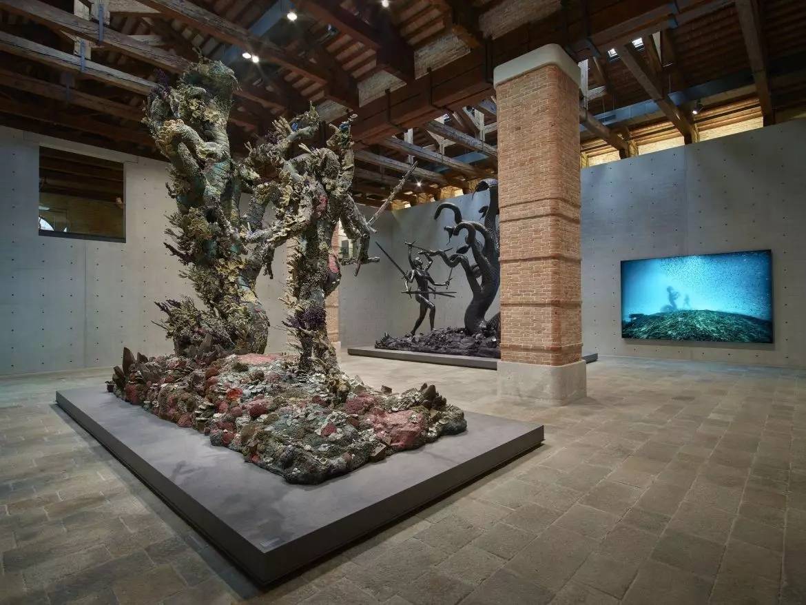 这次的展览《Treasures from the Wreck of the Unbelievable》主题围绕在“令人难以置信的沉船宝藏”,包括从印度洋一艘沉船里捞出来的古代作品。Damien Hirst 断定这些物品属于远久以前的一个奴隶——据说这是来自一个神话,一个在一至二世纪之初的奴隶 Cif Amotan II(也称 Aulus Calidius Amotan),他是以拥有巨大财富而闻名的传奇。直到两千多年后,在印度洋发现了残骸,其中有 170 件物品的表面已经布满了珊瑚、海虫等自然物。根据神话,珊瑚是在女妖美杜莎所渗出的血液里诞生,但真正的珊瑚接触到空气会变硬,所以目前还有一些文物留在海底等待抢救。尽管水下世界的遗迹还在,但被恢复的物品也还算完整没有太大的损坏,这些“古代物品”在威尼斯展出——威尼斯作为一个古老的水上城市,表现这些物品似乎再合适不过。