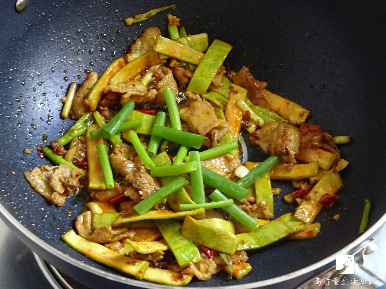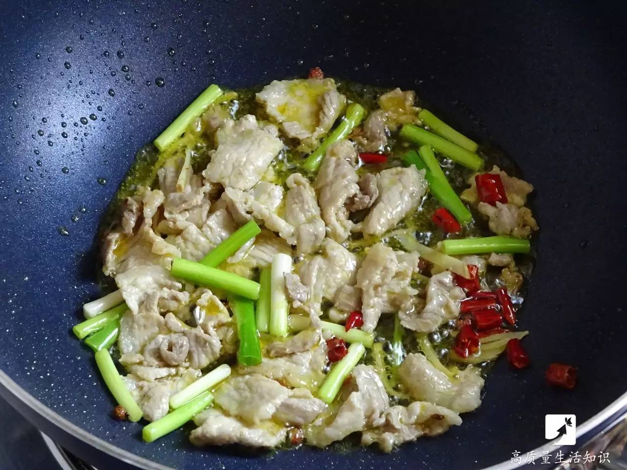出锅前再加入葱段翻炒几下
