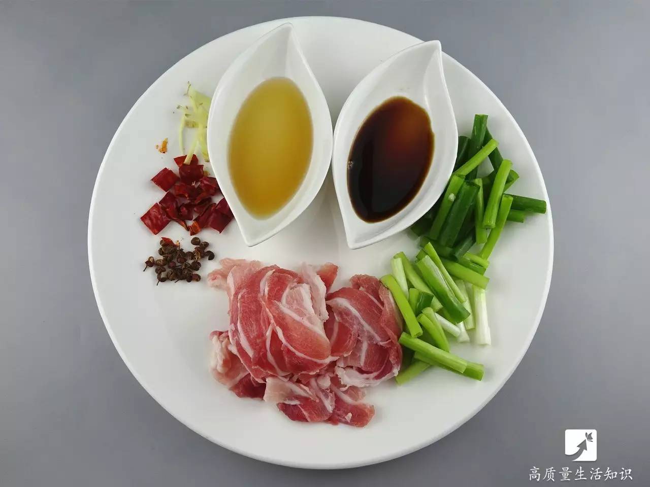 花椒、干辣椒、姜丝、小葱、料酒和生抽备好