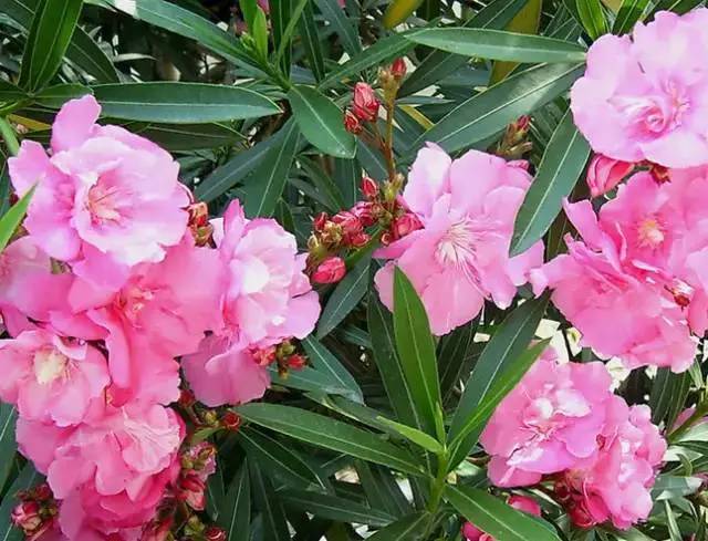 夹竹桃的花、叶、枝条、树皮都有毒,如果误服过量会出现中毒症状。夹竹桃分泌出的乳白色汁液含有一种叫夹竹桃苷的有毒物质,一旦“亲密接触”,轻则皮肤痒痛过敏,重则中毒。