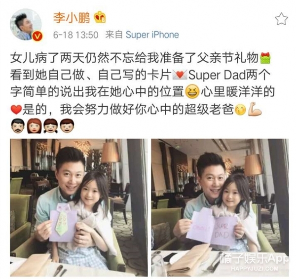 生病了的奥莉还不忘送给爸爸节日礼物,估计再过两年,李小鹏就能收到两份礼物了吧。