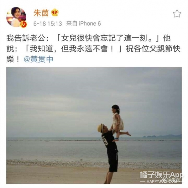 朱茵发的微博特别感人,她跟老公说:“女儿很快就会忘记了这一刻,”黄贯中回答说:“我知道,但我永远不会!”这就是父爱!