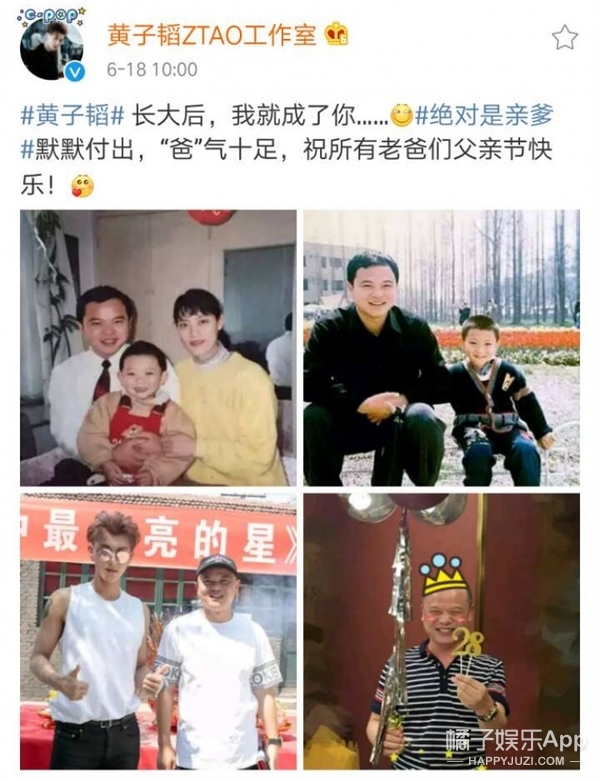 其实,爸爸们不在乎孩子送什么礼物,只要有那份孝心就足够了,今天上午黄子韬工作室晒出黄爸爸的照片,真是“爸”气十足呀!