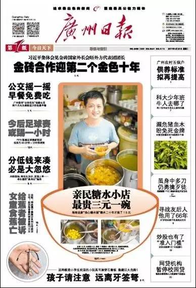 【亲民糖水小店 最贵三元一碗】在海珠区基立北街的巷子里,藏着一家“糖水铺”,它开了将近20年,但价格却非常亲民:豆浆1.5元,豆腐花2元,其他11种糖水一律只需3元,虽然价格很低,小店用料却很实在。档主陈君文说,他做的是街坊生意,没什么人工成本。近20年来,档口租金仅涨了200元,他就想着少赚点,多回馈街坊。