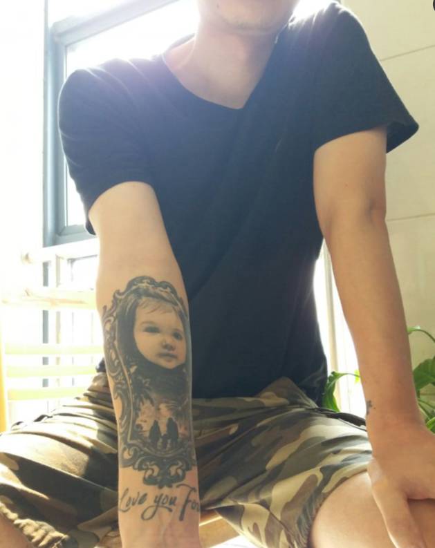 虽然清楚孩子的结局,然而,这位父亲担心一旦宝宝离开了自己无法习惯她离开后的生活,于是,他将孩子的照片纹在手臂里,要让这个宝贝,永远安睡在爸爸的臂弯里。