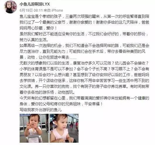 19日早晨,小鱼儿的父母在微博上留下了一段话: