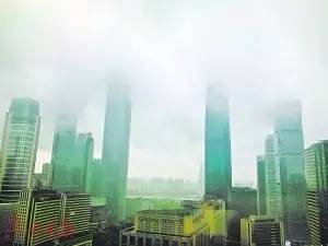 昨日下午,大雨过后的珠江新城云雾缭绕。广州日报全媒体记者骆昌威摄