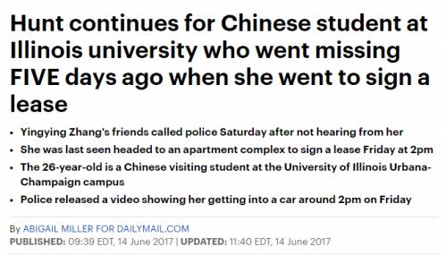 另据介绍,伊利诺伊大学警察局的工作人员称,该局官方推特账号转发了“GoFundMe”捐款网页链接,网页是校方建立,目的是支持已到达美国的章莹颖家属。