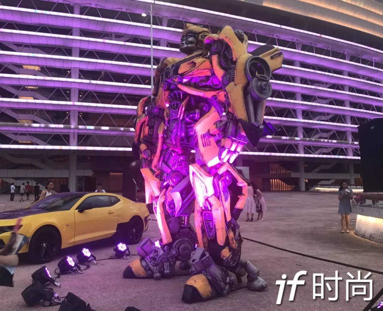 场外布景让人热血沸腾,片方搬来了大黄蜂巨型模型,和它变身前的雪弗兰跑车,引来影迷排队合影。