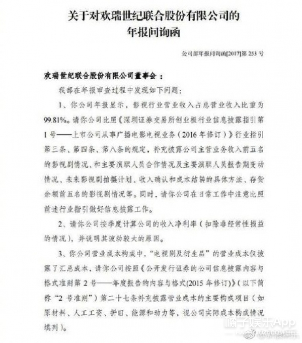 4、【#李易峰借款1800万# 所在公司年报遭问询】今天,据每日经济新闻报道,深交所19日发出问询函,在2016年公司其他应收款前五名中,提到李易峰、悦视影视、嘉行天下的借款及往来款,其中李易峰借款及往来款1800万元,账龄1到2年。深交所要求说明该笔借款的审议和披露情况,是否符合财务资助相关规定。
