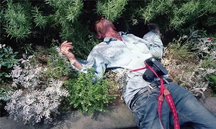 挂着相机 倒在路上的中平卓马