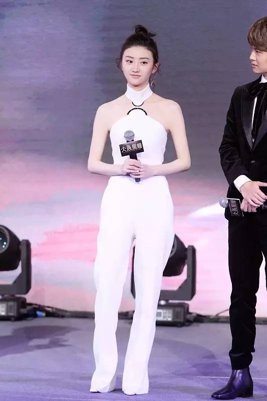 ▲景甜身穿白色挂脖露背连体裤,脚踩白色尖头高跟鞋,甜美中透着一丝小性感。