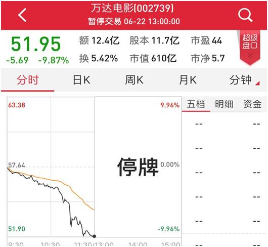 祸延A股万达电影市值半天缩水66.6亿 紧急停牌