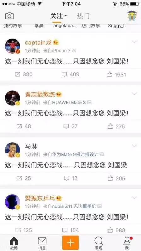 “这一刻我们无心恋战…….只因想念您,刘国梁!”