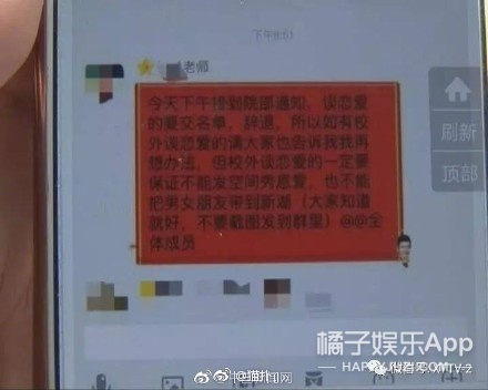 橘子君点评:可怕了,湖南一所职业技术学院的老师不许学生干部谈恋爱,校外谈恋爱的也不能发空间秀恩爱。大家都是大学生了,管这么多,是不是有点过了?不过评论里有一只单身汪表示支持。当然啦,支持也只是玩笑而已。橘子君谈恋爱这种事情,管是管不住的,当然也是催也催不来的。什么时候我们能够真正做到“自由恋爱”呢?不再受时间、物质条件和其他因素所左右。