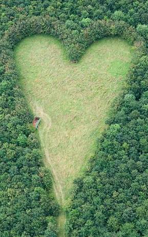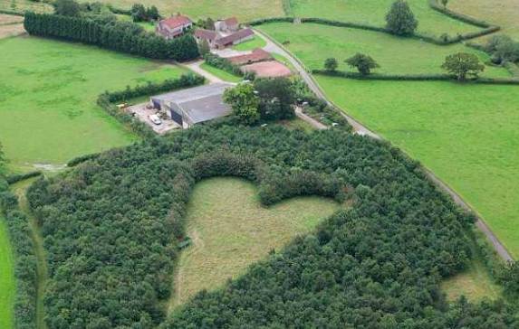 他在这片6英亩的土地上种满了橡树,唯独留下了中间的爱心形状。