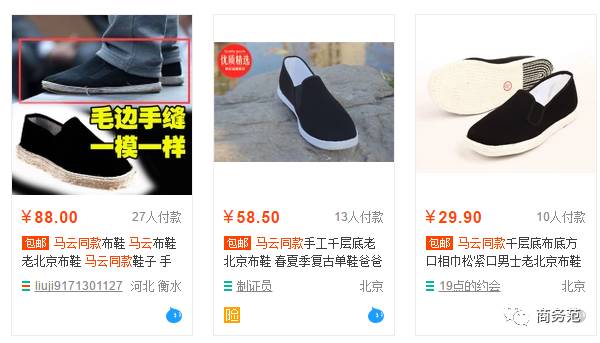 所以,范主搜了一下淘宝,只要输入“马云同款”,就能立刻出现一堆老布鞋,价格29.9起,妥妥的~