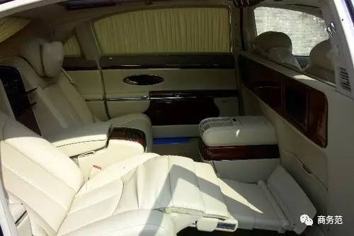 车子的内饰是酱紫哒~后排座椅可以像头等舱的座椅一样供人躺倒休息,对整日奔波的大佬们来说,的确是不错的选择。