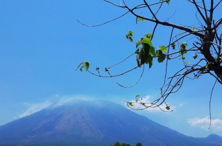 白云绕顶的阿贡火山,巴厘岛第一高峰。