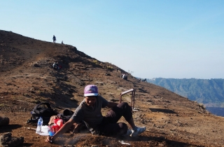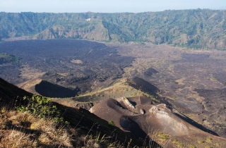 巴图火山非常活跃,它最近的喷发时间,是1974年。环行的过程中,经常看到有洞口冒出热气,温度还非常高。有小猴子在洞口附近徘徊不肯离去,大约是可以取暖。