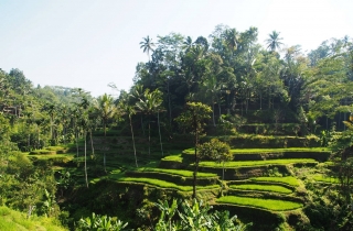 其实,如果到过国内的元阳和龙胜,德格拉朗梯田简直不值一提,连浙江的任何一个小型梯田都可以秒杀它。不过和国内梯田不同的是,这里的田埂上,矗立着三三两两的椰子树,搭着碧绿的稻田,倒也有一番不一样的热带风情。