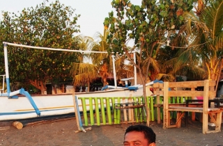 罗威那的意思是“蜜汁的海”,这里的沙滩都是黑色的,据说是火山岩。但不够细,有点硌脚,但海水却是非常干净。傍晚的时候,住处隔壁酒吧的小哥在沙滩上弹着吉他,夕阳照在他身上,把他本来就黝黑的皮肤变成了赤红色。
