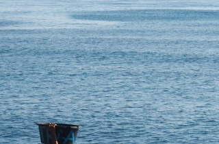 五点半起床,去看海豚。螃蟹船开出去,烟霞色的海面上,太阳缓缓升起,把墨蓝色的海逐渐照亮。浪花扑打在脸上身上,又被风吹干,结成细小的白色盐花。
