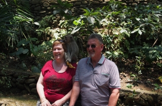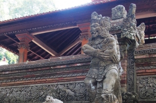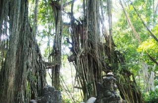 猴林公园是乌布必去的景点,走进去,到处都是大大小小的猴。猴子们很精——公园里有卖香蕉等食物的小摊子,是专门卖给游客喂猴子的,但猴子却跟他们秋毫无犯,一旦吃的东西从摊子上转移到游客手里,它们就立刻下手,毫不客气。