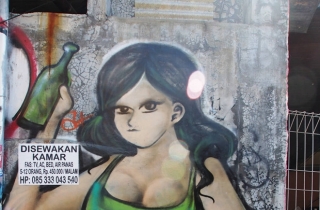 街头涂鸦。巴厘岛是印尼唯一一个信奉印度教的省份,风气自由开放,充满浪漫情调。