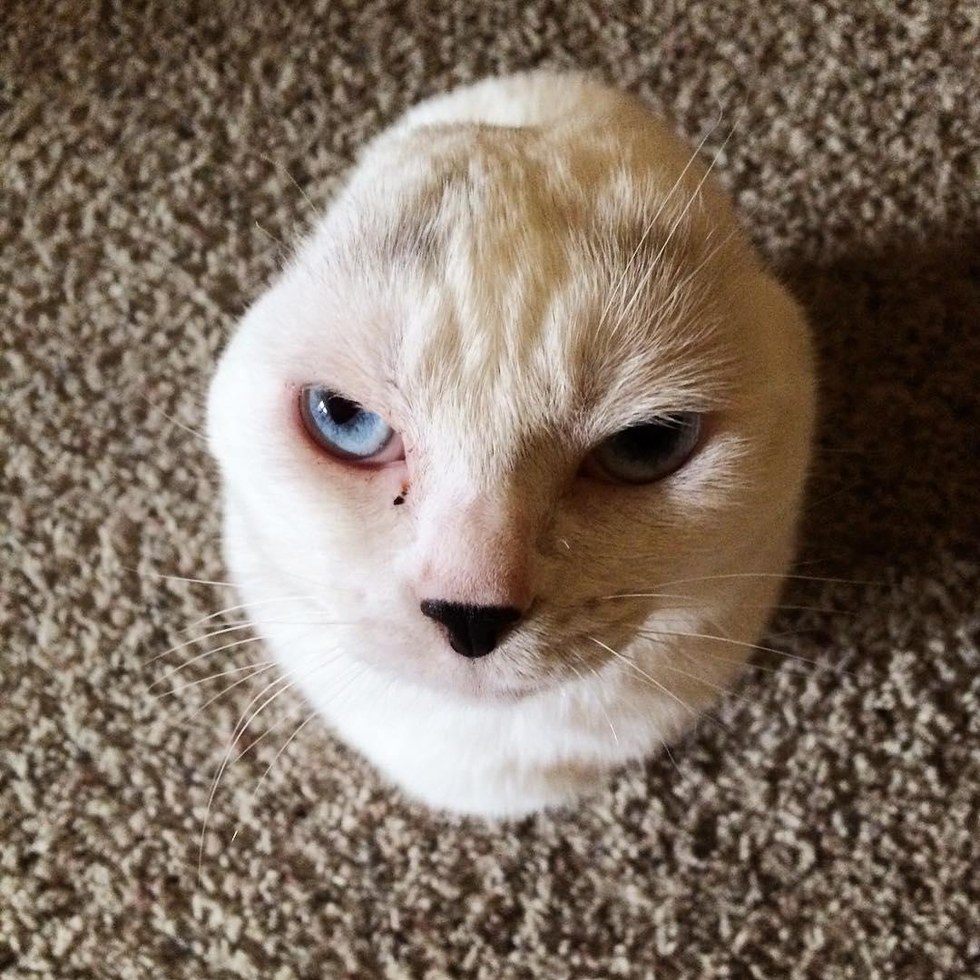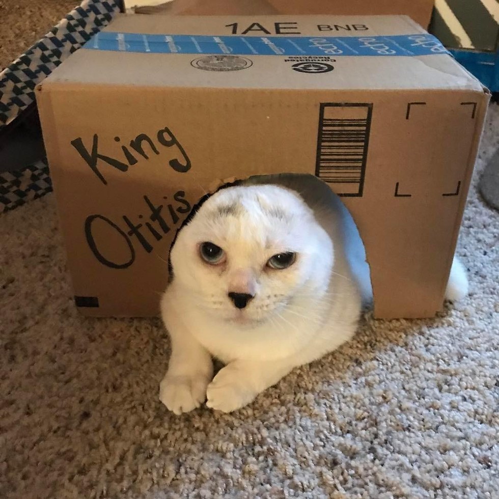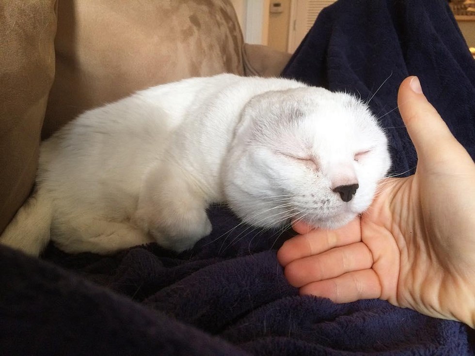 好啦,正式介绍下,他的名字叫Otitis,一只没有耳朵神似海豹的猫咪。