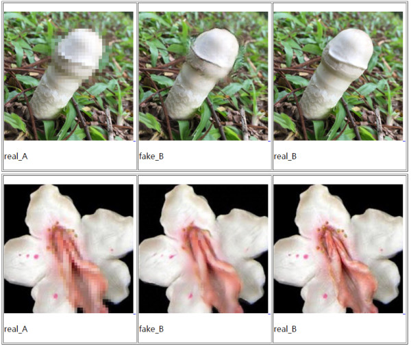 从D盘里随随便便找了几千张图片,用来执行了一下自动打码和pix2pix训练(默认参数),效果是下面这样: