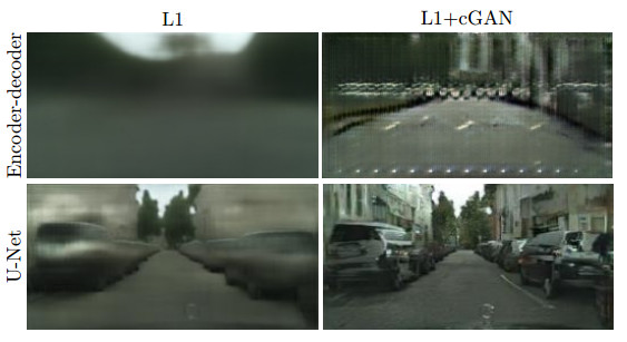 pix2pix和SRGAN的一个异曲同工的地方是都有用重建解决低频成分,用GAN解决高频成分的想法。在pix2pix中,这个思想主要体现在两个地方。一个是loss函数,加入了L1 loss用来让生成的图片和训练的目标图片尽量相似,而图像中高频的细节部分则交由GAN来处理: