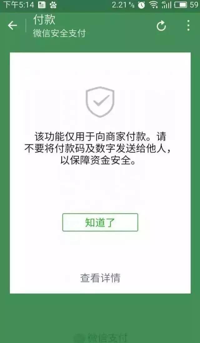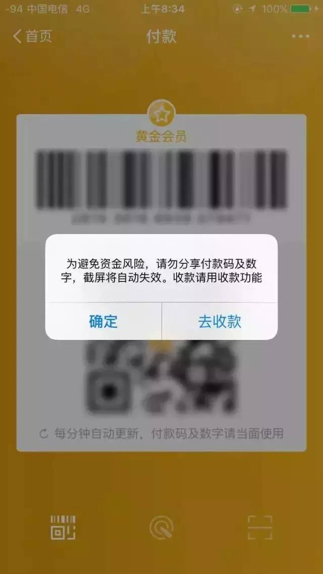为了防止骗子拿到付款码行骗,支付宝和微信已经在付款码页面截图上做了处理。支付宝付款码页面安卓手机无法截图,苹果手机截图后自动失效。