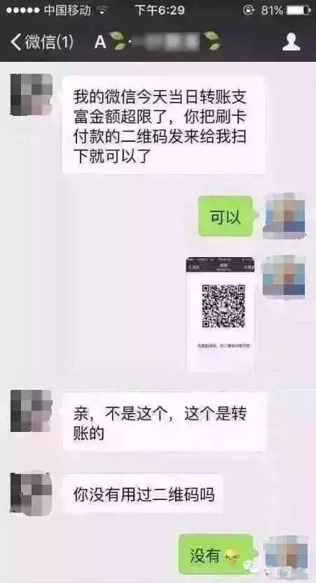 不法分子以“微信当日转账支付金额超限”为由,骗取受害者付款的二维码。