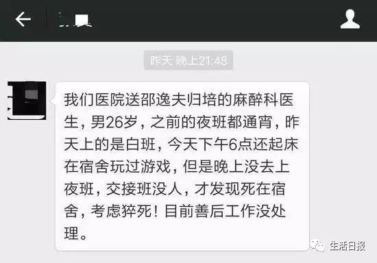 4月16日,南宁市中医院一名不到30岁的年轻医生猝死;