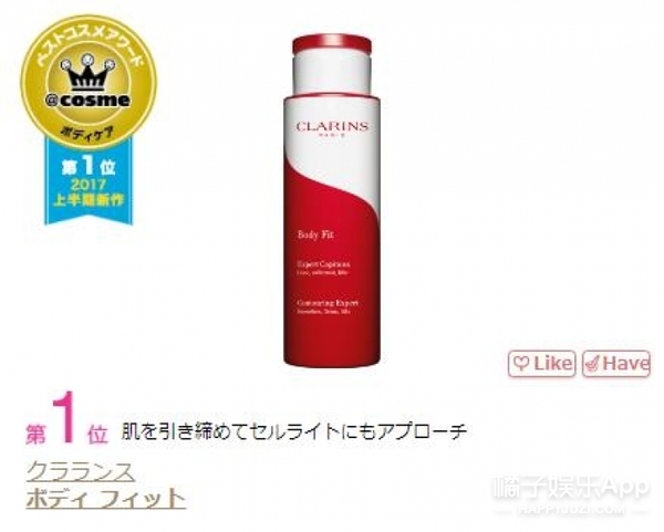 第一位:娇韵诗Body Fit 纤体精华乳 价格:8,000日元