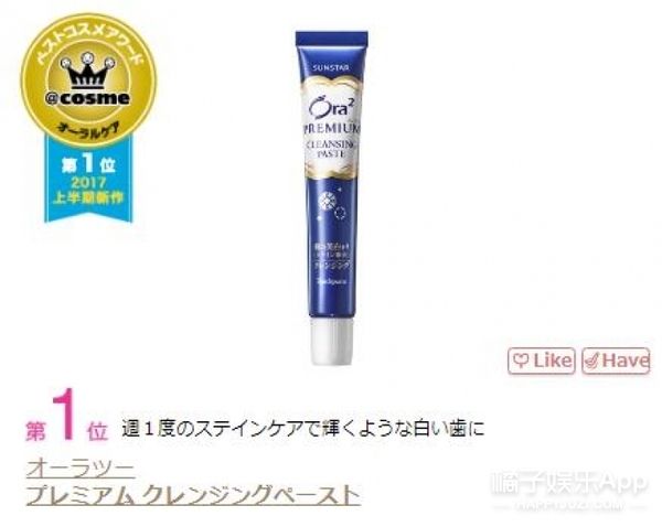 第一位:Ora2皓乐齿顶级洁净牙膏 价格:650日元