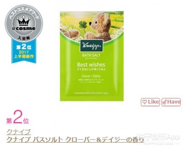 第二位:Kneipp克奈圃三叶草&雏菊浴盐 价格:150日元