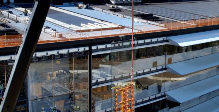 其中最炫酷的是乔布斯礼堂的屋顶,号称全球最大的、无支撑结构的碳纤材质屋顶,建造时需要把80吨的材料,先在迪拜的沙漠里进行组装测试,之后再运回美国,壕气冲天。