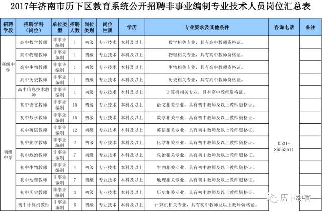 PS:更多招聘信息,请点击此处查看“2017年济南市历下区教育系统公开招聘非事业编制专业技术人员简章”