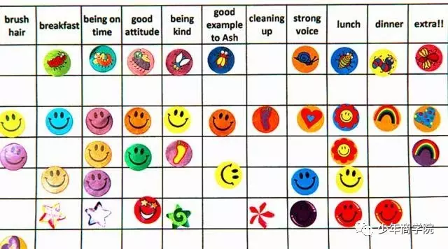 最后,他们中的大多数都开始使用积分奖励表。这是一种行为管理系统,在这个系统中,孩子们可以用设定好的行为,比如打扫房间、做家务、做家庭作业,来换取贴纸或者积分,然后用这些贴纸或积分,兑换父母给的奖品或者“外出”、“吃大餐”等奖励。