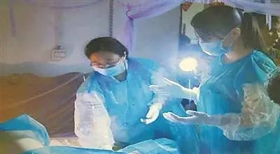 19时05分,救援队员们终于到达孕妇家中。爬进房屋,产护人员立即对孕妇进行检查,发现其羊水已破裂,于是马上做好接生准备。