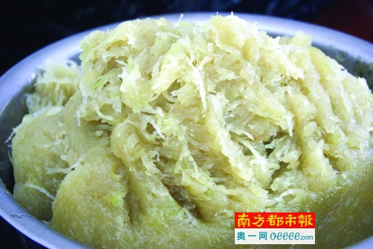 制作冬蓉真正选用的是灰皮老冬瓜。台山本土种植的灰皮老冬瓜,肉质清润爽口,纤维丰富,制成的冬蓉口感韧性足,入口如翅。