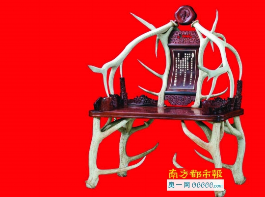 6 .卢艺鹿角椅制作技艺代表性作品:福禄寿鹿角椅。
