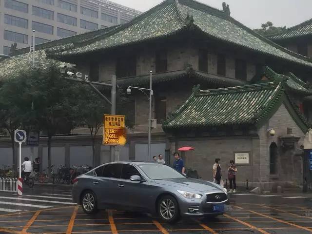 今天上午,记者在东城区校尉胡同、北京协和医院西门附近看到,安装有探头的立柱上,又多了一位“黄色制服”的电子警察。这个电子警察外形方正,写着“电子警察监管(违法鸣笛)”,上方是一串组合“电子眼”,下方是显示屏,显示着三个违法鸣笛的车牌号,均为京牌。