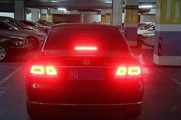 3、大灯或是刹车灯对判断与障碍物的距离有帮助,通常在参照物上留下的光斑越小说明车辆距离障碍物越近。