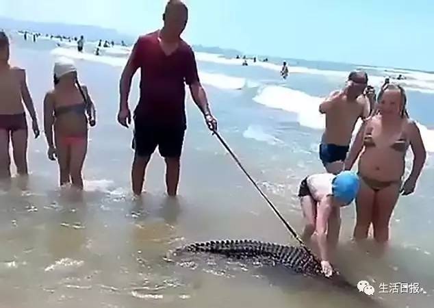 近日,美国北卡罗来纳州赖茨维尔海滩上发生了惊险的一幕,两名男子试图将一条被钓鱼线缠住的小虎鲨拉上岸,结果被咬伤,目击者拍下了事发的整个过程。视频中,一只长约4英尺(约1.2米)的小虎鲨被鱼线绊住,正在拼命逃脱,身后有两名男子想把它拉上岸。眼看着这条小虎鲨就要逃脱了,其中一名男子扑上前去,试图拉鲨鱼的尾巴,不料被鲨鱼反咬一口,鲜血顿时染红了水面,于是他拖着受伤的手臂仓皇地逃上岸。