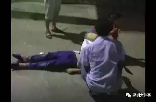 目击者提供的视频显示,男子躺在地上,身体不时抽搐,一名女子在帮其止血,地上流淌了很多血,男子双脚朝向的位置有一块颇大的石块,当时天色也暗了下来,旁边有不少市民在围观。