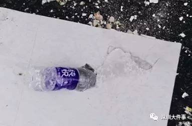 而矿泉水瓶也开裂了。