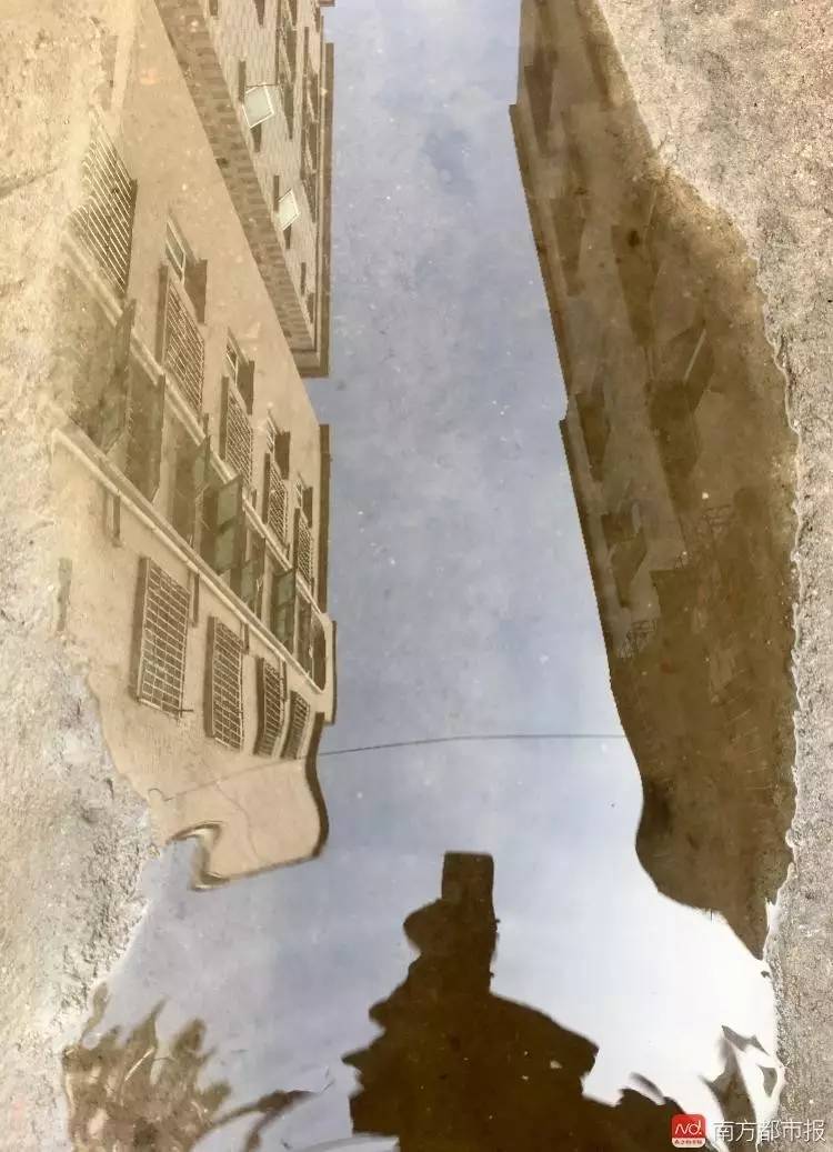 昨日下午,事发现场已恢复平静,冲洗过的地面仍留有积水,倒映着可能坠落石块的几栋楼房,有民警也正在这几栋楼里询问排查。南都记者 徐文阁 摄